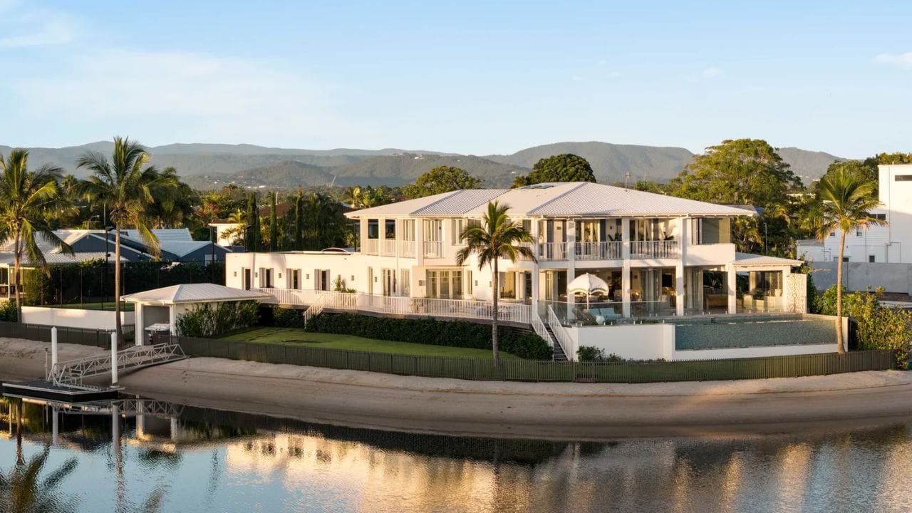 The Sweat app co-founder has wrapped up her Gold Coast property hunt with a $13 million Mermaid Waters mansion – one that won the President's Award at last year's Gold Coast Housing and Construction Awards. The waterfront home sits on 81.5 metres of frontage with a tennis court, infinity pool, and private pontoon. The tropical colonial verandas alone are worth the click.